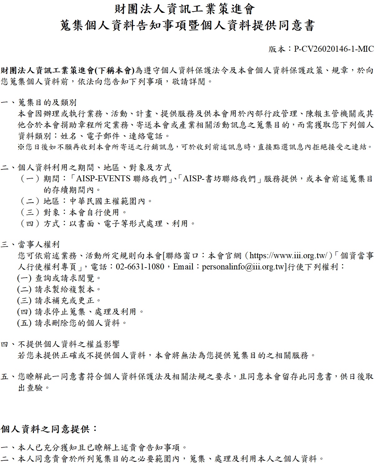 本人獲知且已瞭解上述事項,並同意貴會於所列蒐集目的之必要範圍內,蒐集、處理及利用本人之個人資料。