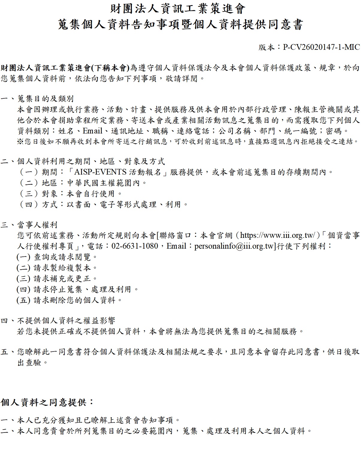 本人獲知且已瞭解上述事項,並同意貴會於所列蒐集目的之必要範圍內,蒐集、處理及利用本人之個人資料。 顯示相關內容